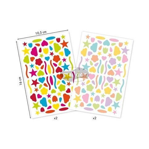 Samolepky Maildor Inital s různými multitvary. Balení obsahuje 4 listy, 2 motivy po 2 ks. Samolepky lze sloupnout a znovu nalepit. Rozměry balení: 10,5 x 16 cm.