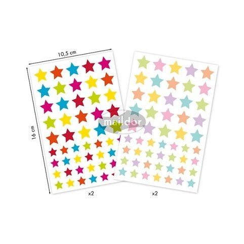 Samolepky Maildor Inital s různými barvami a velikostmi hvězd. Balení obsahuje 4 listy, 2 motivy po 2 ks. Samolepky lze sloupnout a znovu nalepit. Rozměry balení: 10,5 x 16 cm.