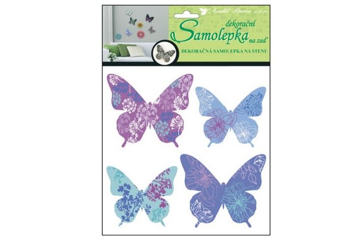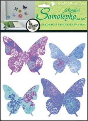 Samolepky na zeď 3D motýli modrofialoví 20x20x1cm, 4ks