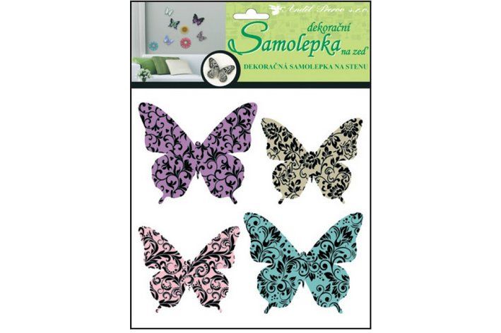 Samolepky na zeď 3D motýli s ornamenty 30x22x1cm, 4ks
