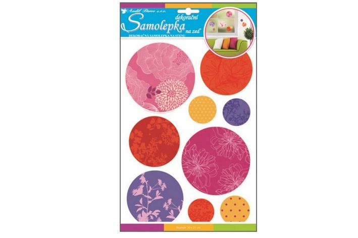 Samolepky na zeď barevné vzorované kruhy s glitry 35x22cm