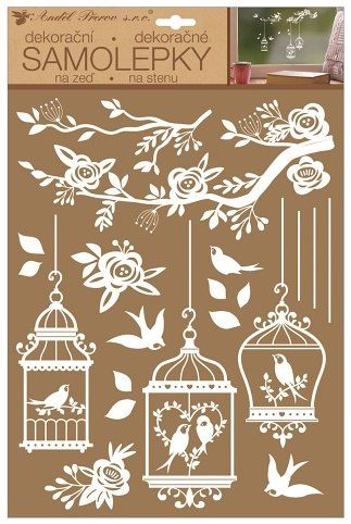 Samolepky na zeď bílé ptačí klece 27,5 x 41 cm