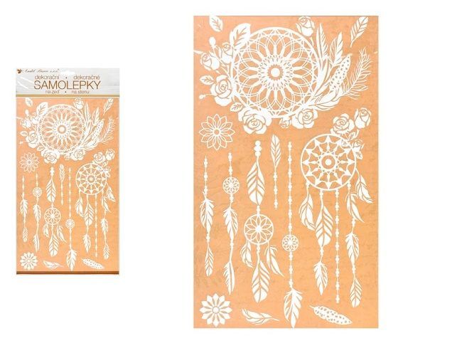 Pokojová samolepící dekorace - bílý lapač snů - na stěny, dveře, okna, zrcadla a jiné hladké plochy. Tato samolepka na zeď v mžiku oživí Váš obývací pokoj, koupelnu, chodbu, dětský pokoj či ložnici. NÁVOD: Opatrně sejměte samolepku z podkladového papíru a umístěte ji na zvolenou suchou, čistou a rovnou plochu. Samolepku vyhlaďte od středu ke krajům tak aby pod ní nezůstali žádné vzduchové bubliny. Uvedená cena je za 1 ks.
