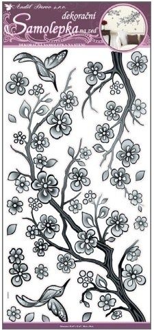 Samolepky na zeď černá větvička s glitry a kamínky 69x32cm Snadné použití! Vhodné na stěny, okna, zrcadla, kachličky a jiné hladké plochy! NÁVOD: Opatrně sejměte samolepku z podkladového papíru a umístěte ji na zvolenou suchou a čistou plochu. Vyhlaďte od středu ke krajům.