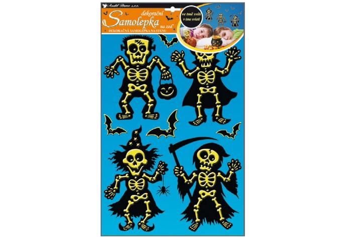 Samolepky na zeď kostry svítící ve tmě 41x29cm