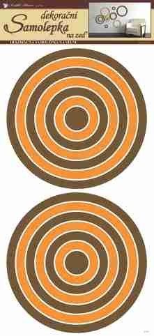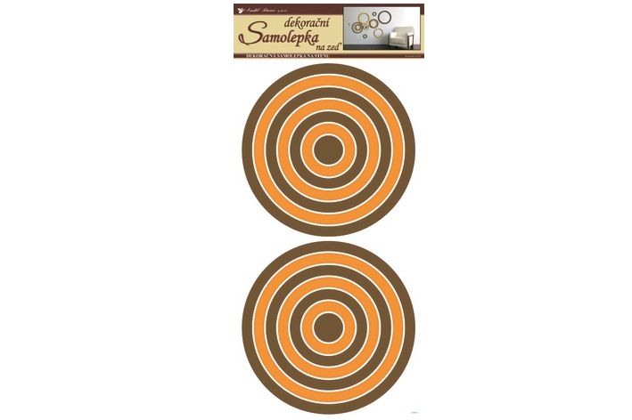 Samolepky na zeď kruhy oranžovohnědé, 69x32 cm. Snadné použití! Vhodné na stěny, okna, zrcadla, kachličky a jiné hladké plochy! NÁVOD: Opatrně sejměte samolepku z podkladového papíru a umístěte ji na zvolenou suchou a čistou plochu. Vyhlaďte od středu ke krajům.