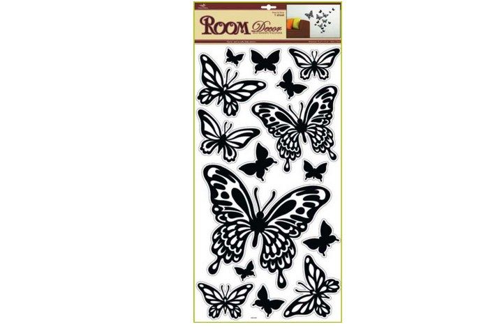 Samolepky na zeď motýli černí, 69x30cm. Snadné použití! Vhodné na stěny, okna, zrcadla, kachličky a jiné hladké plochy! NÁVOD: Opatrně sejměte samolepku z podkladového papíru a umístěte ji na zvolenou suchou a čistou plochu. Vyhlaďte od středu ke krajům.