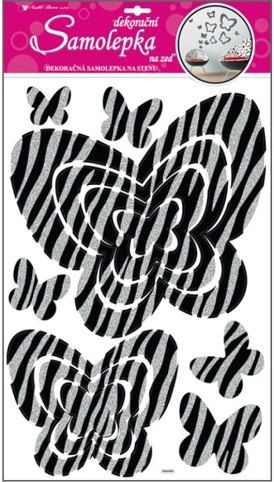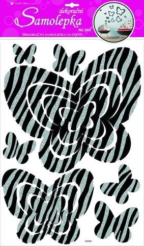 Samolepky na zeď motýli se stříbrnými glitrovými pruhy 50x32cm