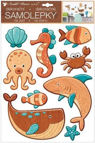 Samolepky na zeď plastická 41x28 cm, mořská zvířata / 15106