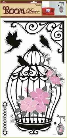 Samolepky na zeď ptačí klec černá s růžovými květy, 69x30cm. Snadné použití! Vhodné na stěny, okna, zrcadla, kachličky a jiné hladké plochy! NÁVOD: Opatrně sejměte samolepku z podkladového papíru a umístěte ji na zvolenou suchou a čistou plochu. Vyhlaďte od středu ke krajům.