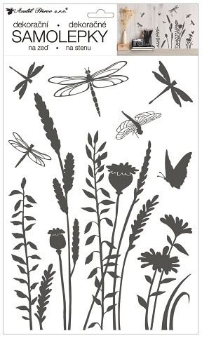 Samolepky na zeď rostliny a vážky 24 x 42 cm
