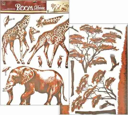 Samolepky na zeď safari, 80x50 cm. Snadné použití! Vhodné na stěny, okna, zrcadla, kachličky a jiné hladké plochy! NÁVOD: Opatrně sejměte samolepku z podkladového papíru a umístěte ji na zvolenou suchou a čistou plochu. Vyhlaďte od středu ke krajům.