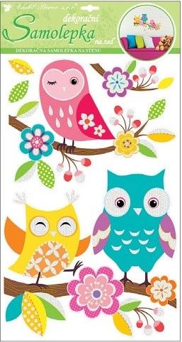 Samolepky na zeď sovy s glitry 60x32 cm