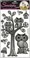 Samolepky na zeď strom se sovami s rastrem 50x32cm