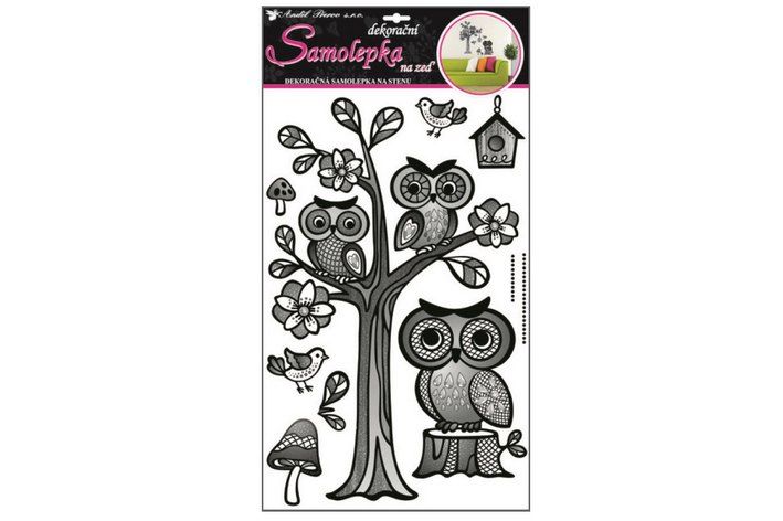 Samolepky na zeď strom se sovami s rastrem 60x32cm Snadné použití! Vhodné na stěny, okna, zrcadla, kachličky a jiné hladké plochy! NÁVOD: Opatrně sejměte samolepku z podkladového papíru a umístěte ji na zvolenou suchou a čistou plochu. Vyhlaďte od středu ke krajům.
