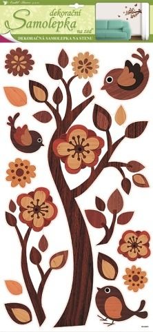 Samolepky na zeď větev s imitací dřeva, 69x32 cm. Snadné použití! Vhodné na stěny, okna, zrcadla, kachličky a jiné hladké plochy! NÁVOD: Opatrně sejměte samolepku z podkladového papíru a umístěte ji na zvolenou suchou a čistou plochu. Vyhlaďte od středu ke krajům.