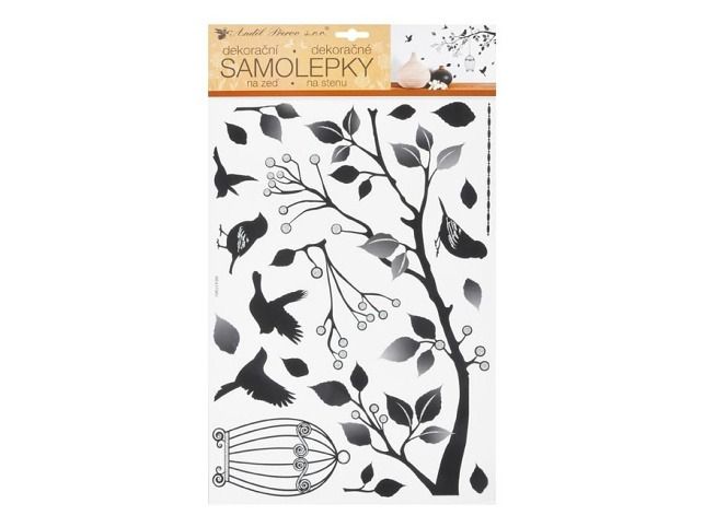Samolepky na zeď větev s klecí se stříbrnými glitry 29 x 48 cm