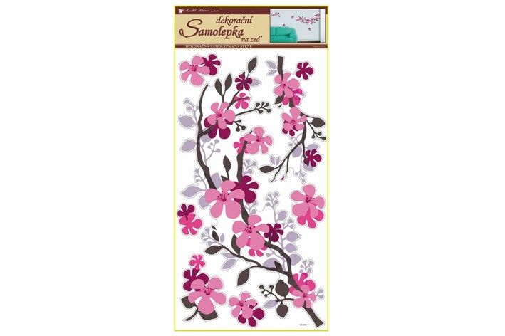Samolepky na zeď větvička hnědorůžová, 60x32cm.