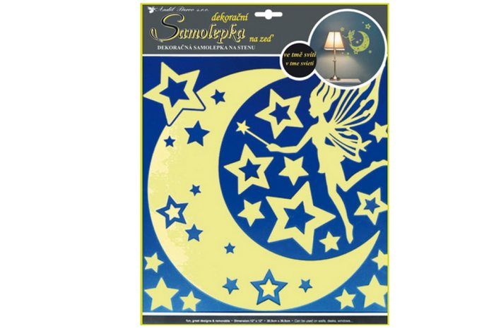 Samolepky na zeď víla s hvězdičkami svítící ve tmě 32x31cm.
