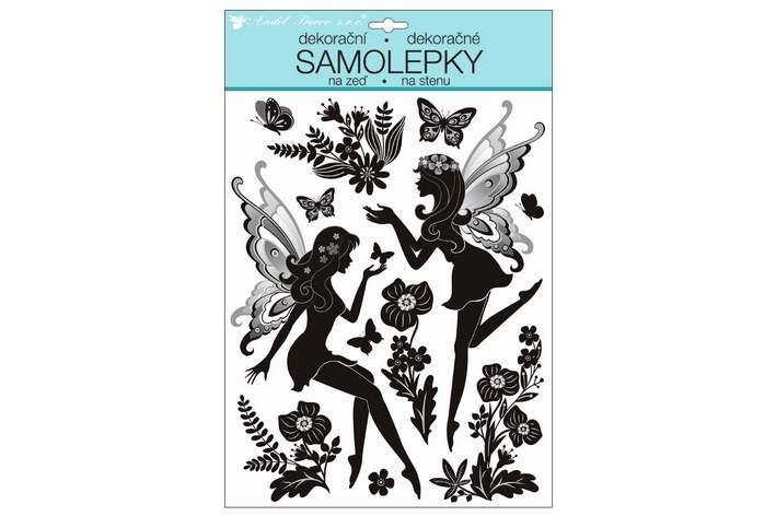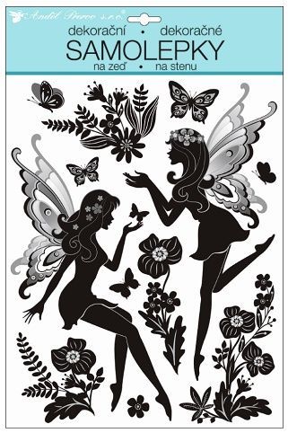 Samolepky na zeď víly s glitry 35 x 27 cm