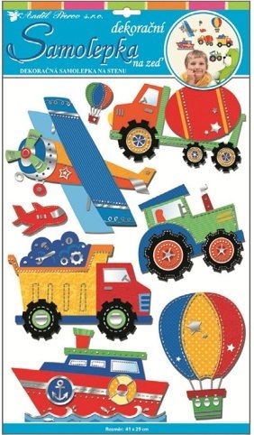 Samolepky na zeď z tvrdého papíru dopravní prostředky 50x30cm Snadné použití! Vhodné na stěny, okna, zrcadla, kachličky a jiné hladké plochy! NÁVOD: Opatrně sejměte samolepku z podkladového papíru a umístěte ji na zvolenou suchou a čistou plochu. Vyhlaďte od středu ke krajům.