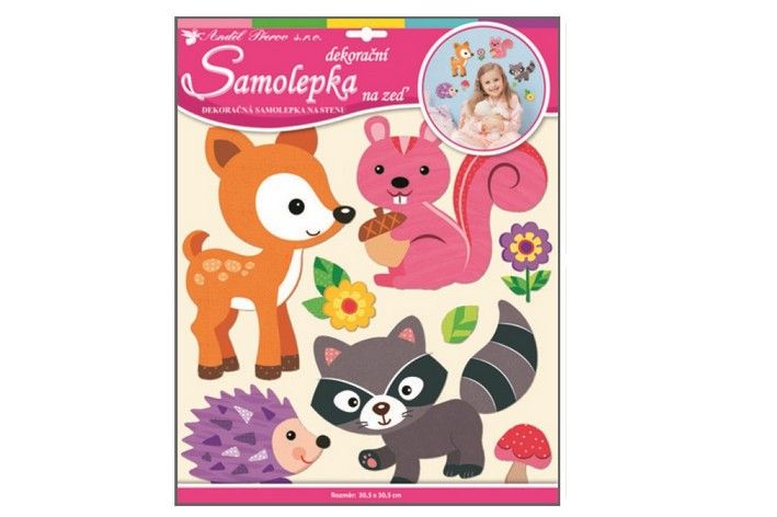 Samolepky na zeď lesní zvířátka z tvrdého papíru, 30,5x30,5cm.