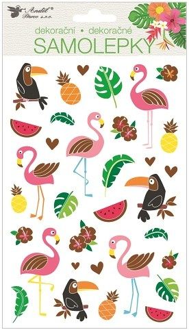 Samolepky plameňáci plastické třpytivé 14 x 25 cm
