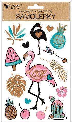 Samolepky plameňák se zlatou ražbou 14 x 25 cm