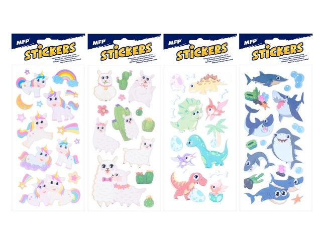 Samolepky s obrázky jednorožců, lam, dinosaurů a žraloků. Navíc mají tyto úžasné samolepky pohyblivé oči. Vhodné jako dekorace do sešitu, bloku nebo přání. Vyzdobte si těmito krásnými samolepkami, které vynikají svou barevností cokoliv vás napadne, třeba dárek, obálku, přáníčko, sešit, mobil, zrcadlo aj. Motiv: jednorožci, lamy, dinosauři, žraloci NÁVOD: Jednoduše přilepíme na jakoukoliv hladkou plochu. UPOZORNĚNÍ: Není hračka, obal odstraňte z dosahu dětí. Používejte pod dohledem dospělé osoby. Uvedená cena je za 1 balení.