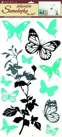 Samolepky pokoj. dekorace černošedá s tyrkysovými motýli 69x32cm /1030/