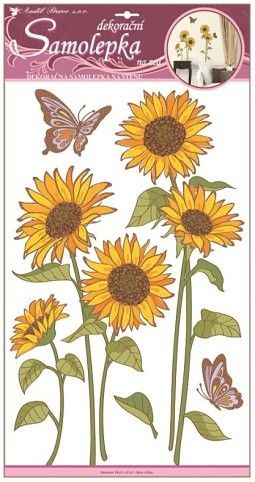 Samolepky pokoj. slunečnice s motýly a glitry 50x32 cm /10031/