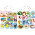 Samolepková knížka malého formátu obsahuje 12 barevných stran a více než 45 samolepek k dolepení a procvičení jemné motoriky nejmenších dětí.