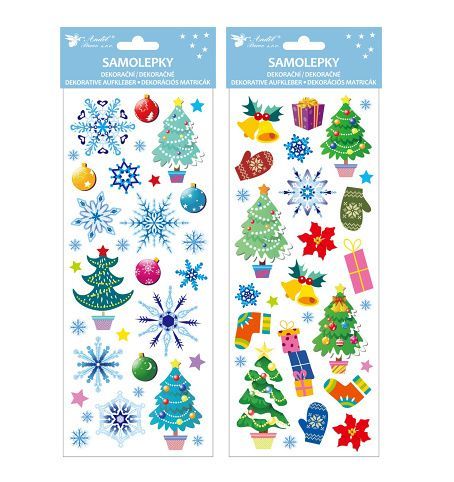 Samolepky s glitry- vhodné na hladké plochy (sklo, výloha, zrcadlo, kachličky, stěny)- rozměr archu: 13 x 34,5cm