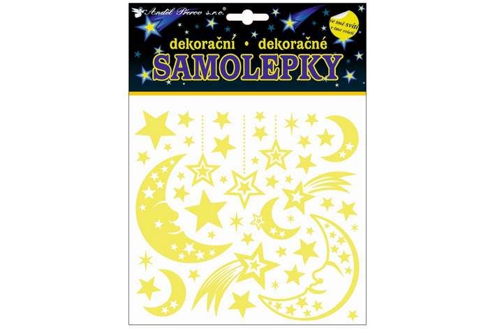 Samolepky svítící ve tmě měsíc a komety 18x18cm