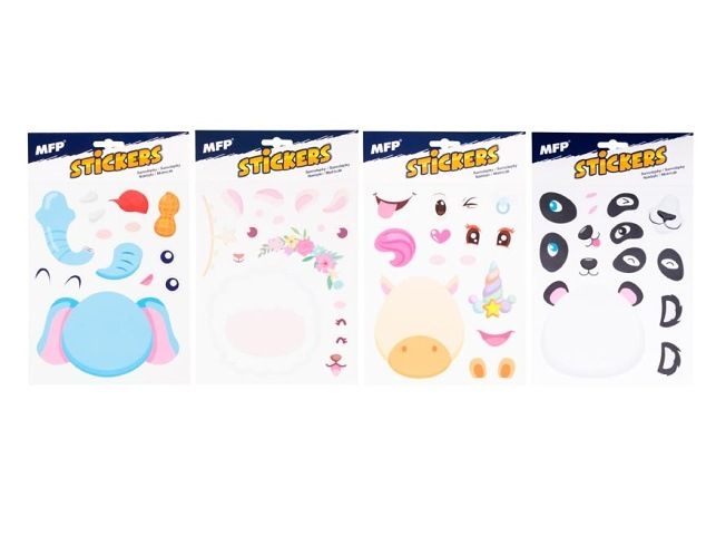 Zábavné samolepky vytvoř si obličej. S těmito samolepkami si jistě každé díte vyhraje a vytvoří si po nalepení všech samolepek obličej zvířete. Motiv: slon, králíček, jednorožec, panda UPOZORNĚNÍ: Není hračka, obal odstraňte z dosahu dětí. Používejte pod dohledem dospělé osoby. Uvedená cena je za 1 balení.