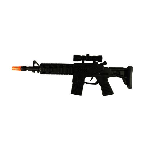 Dětský samopal o délce 40 cm je skvělou volbou pro každého malého fanouška akčních bojových her! Díky mechanickému mačkání spouště vydává realistické zvuky a při střelbě jiskří.