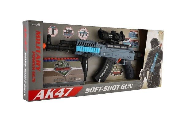 Samopal na pěnové náboje + náboje 12ks plast 60cm na baterie se světlem, zvukem v krabici