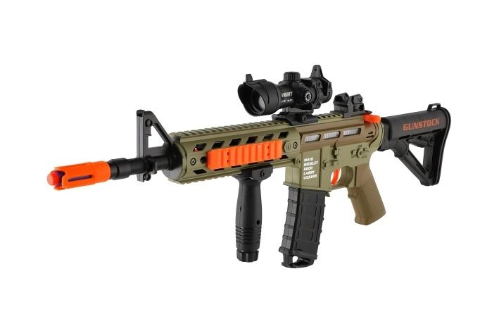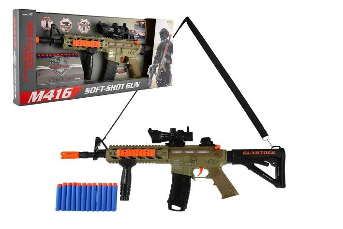 Samopal na pěnové náboje + náboje 12ks plast 60cm na baterie se světlem, zvukem v krabici