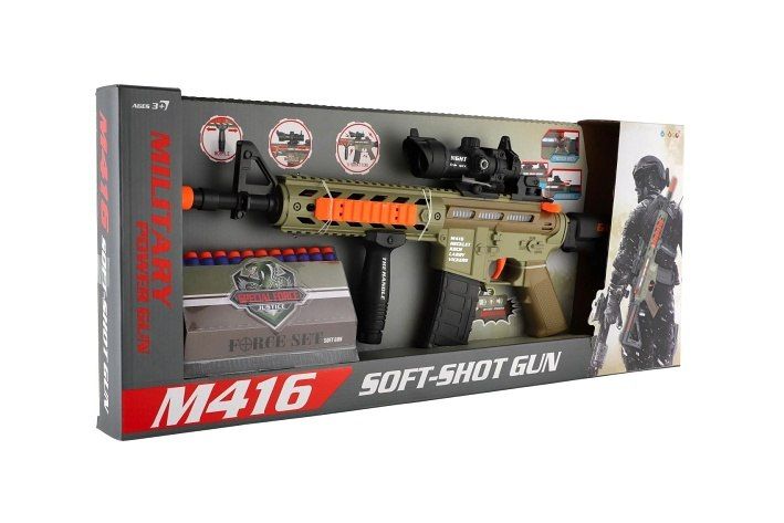 Samopal na pěnové náboje + náboje 12ks plast 60cm na baterie se světlem, zvukem v krabici