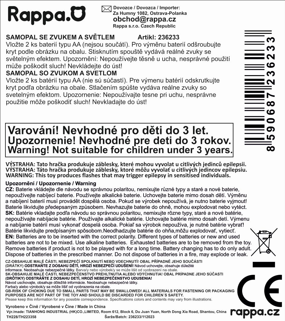 Famózní policejní samopal s reálnými zvuky a světelným efektem! Do samopalu je potřeba vložit 2 ks baterií typu AA, které nejsou součástí balení. S tímto 53 cm dlouhým samopalem, zvládneš každou policejní akci!