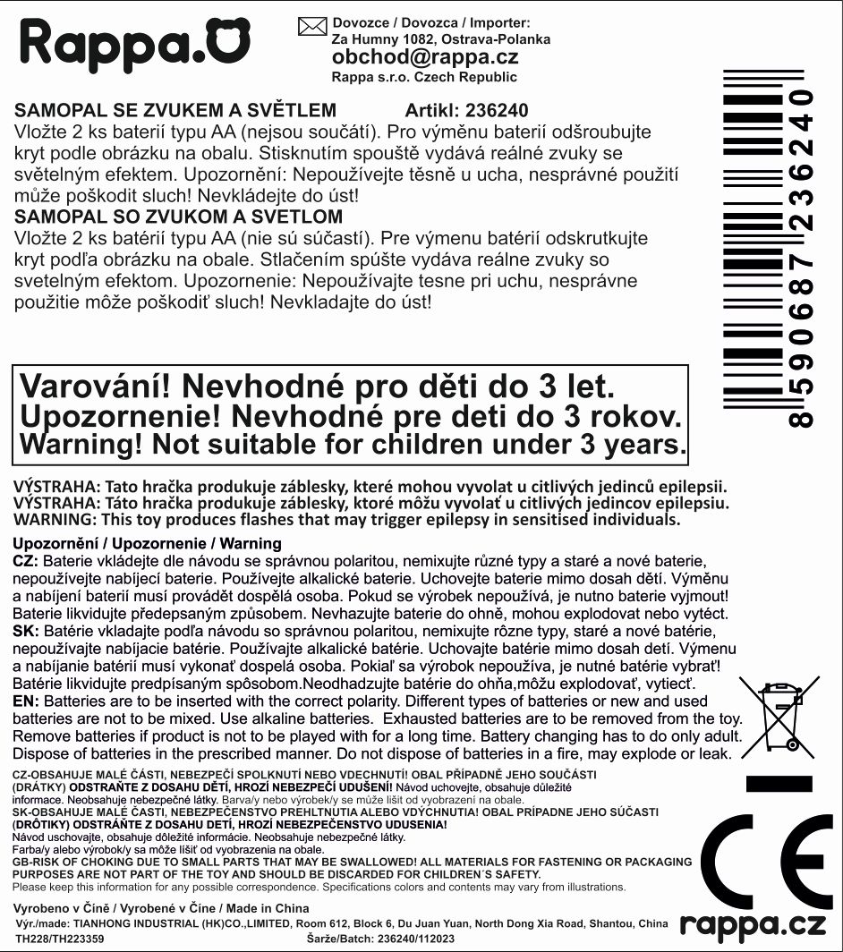 S tímto samopalem zvládneš tuhle policejní akci na jedničku! Samopal po zmáčknutí spouště, vydává reálné zvuky a to i se světelným efektem! Je potřeba vložit do samopalu 2 ks baterií typu AA, které nejsou součástí balení!