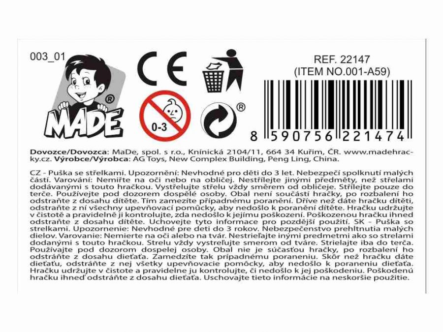 Tento samopal s příslušenstvím je vhodný pro kluky od 3 let. S výškou 62 cm, šířkou 20,8 cm a hloubkou 4 cm poskytuje skvělou zábavu. Baleno v blisterovém obalu z plastu, samopal nepotřebuje baterie a neobsahuje je. S rozměry hračky 50 cm je ideální pro hravé akce. Užijte si akční dobrodružství s tímto samopalem na kartě.