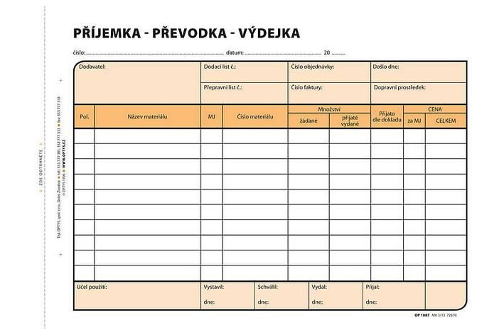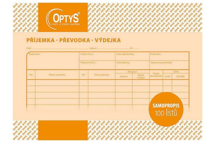 - PAPÍRNICTVÍ / TISKOPISY / ÚČETNÍ A DAŇOVÉ DOKLADY / Příjemky / A5 / OPTYS