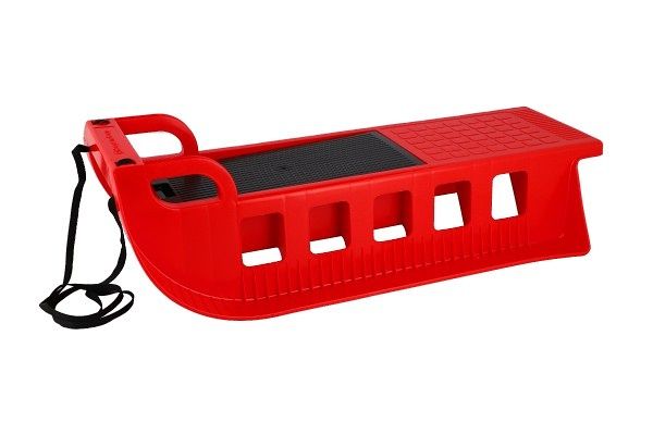 Pevné a lehké plastové sáňky s popruhem pro tahání, madly a úložným prostorem pod sedátkem. Popruh je umístěn v úložném prostoru. Skluznice jsou rozšířené pro opření nohou. Sáně jsou určeny pro rekreační sport. Doporučené maximální zatížení saní je 80 kg.