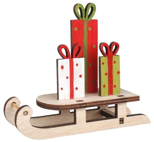 Sáně s dárky dřevěné na postavení 10,5 x 12 cm