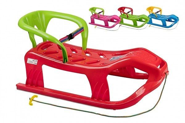 Kvalitní plastové sáňky s opěrkou a bezpečnostními pásy jsou vyrobeny z odolného plastu. Maximální nosnost těchto saní je 50 kg.