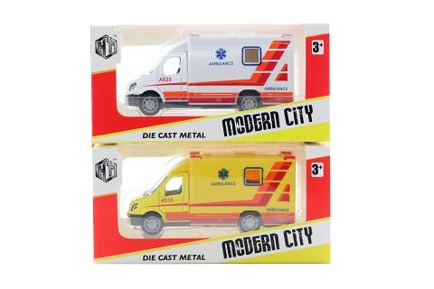 Kovová sanitka. Baleno v krabičce. Rozměry balení 14,5x6x7 cm. Velikost autíčka cca 10x4,5 cm. Věk 3+