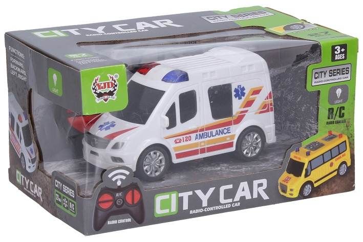 Sanitka RC na dálkové ovládání. Rozměry 13,5x5,5x7 cm. Frekvence 27MHz. Světelné efekty. 2xAA do auta, 2xAA do ovladače nejsou součástí. Přepínač ON/OFF na spodní straně auta.