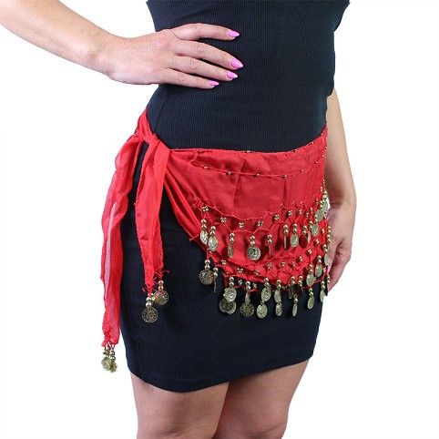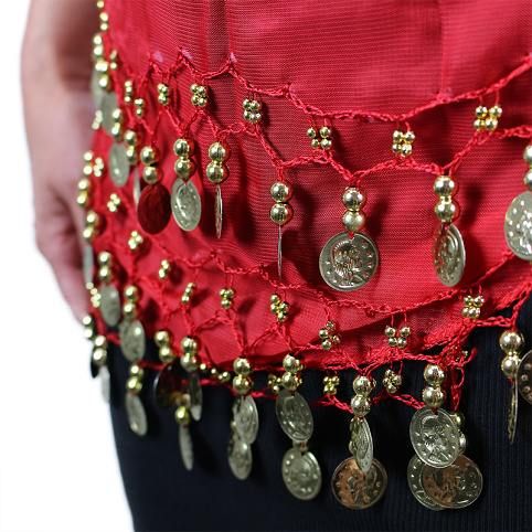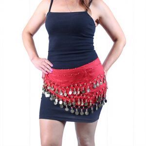 Stylový textilní šátek přes boky se zlatými penízky, který vkusně doplní váš karnevalový kostým břišní tanečnice nebo orientální dívky.