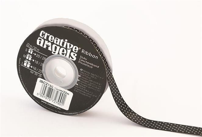 Saténová stuha, černá s bílými puntíky, 15 mm x 22 m, IBC2790